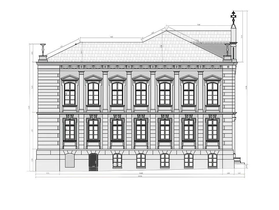 Розроблено комплект 2D CAD-креслень фасадів та розрізів будівлі школи у Німеччині на основі хмари точок. Проєкт виконано для забезпечення точного документування об’єкта та підготовки даних для подальшого ремонту і модернізації.